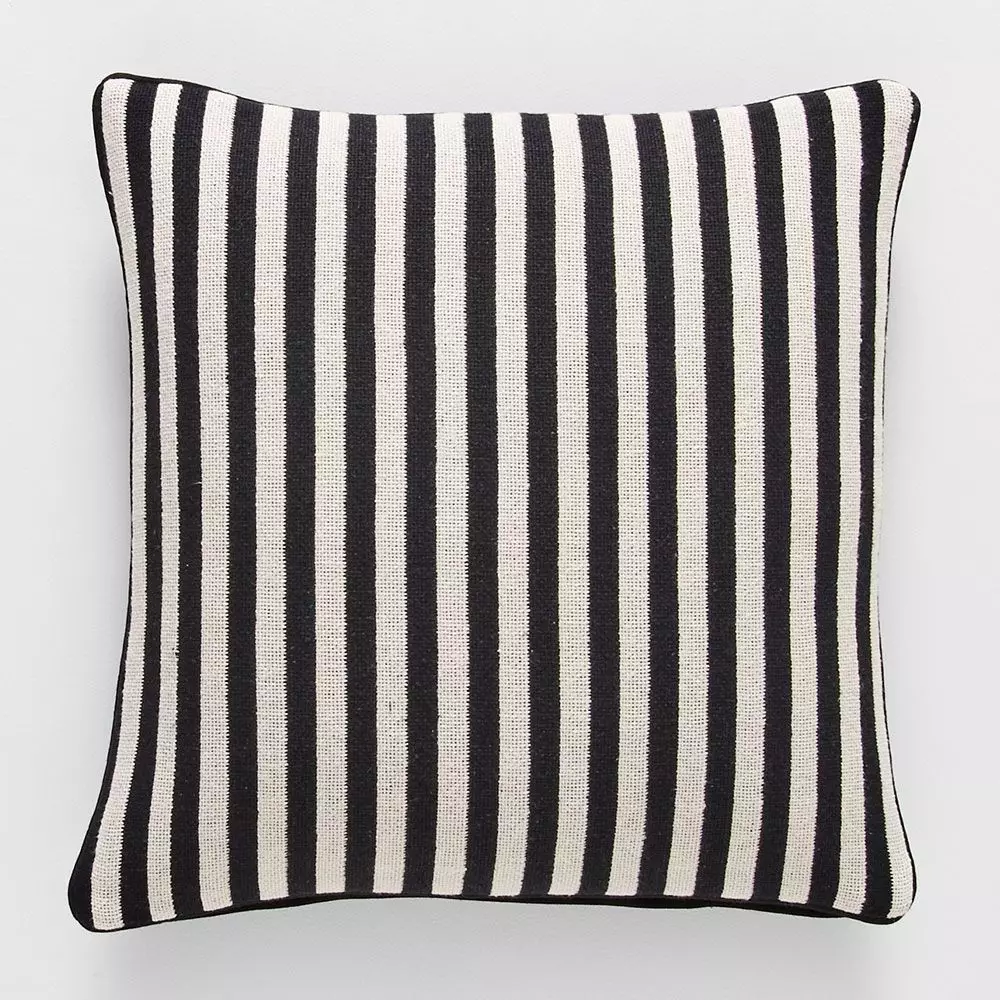 A bold black and natural stripe cushion with a plain black reverse. Made from Indian cotton with a luxurious feather insert.