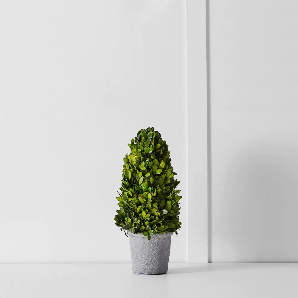 This stunning boxwood tree comes complete with battery-powered fairy lights and is perfect for an entrance, on a console table or a token Christmas tree. Crafted from real preserved Boxwood. Two sizes are available and they look lovely as a pair, or in multiples of the same size.