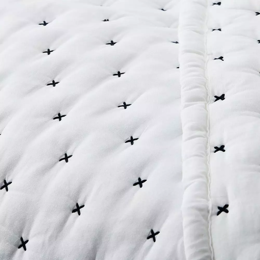 This simple white cotton coverlet with an ink blue cross stitch detail will add some subtle texture and colour to your bed. Pick up the accent colour with some accessories – sheets, cushions, pillowcases, or a throw. It’s the perfect weight to use instead of a quilt in warmer weather and will add an extra layer of warmth in winter.