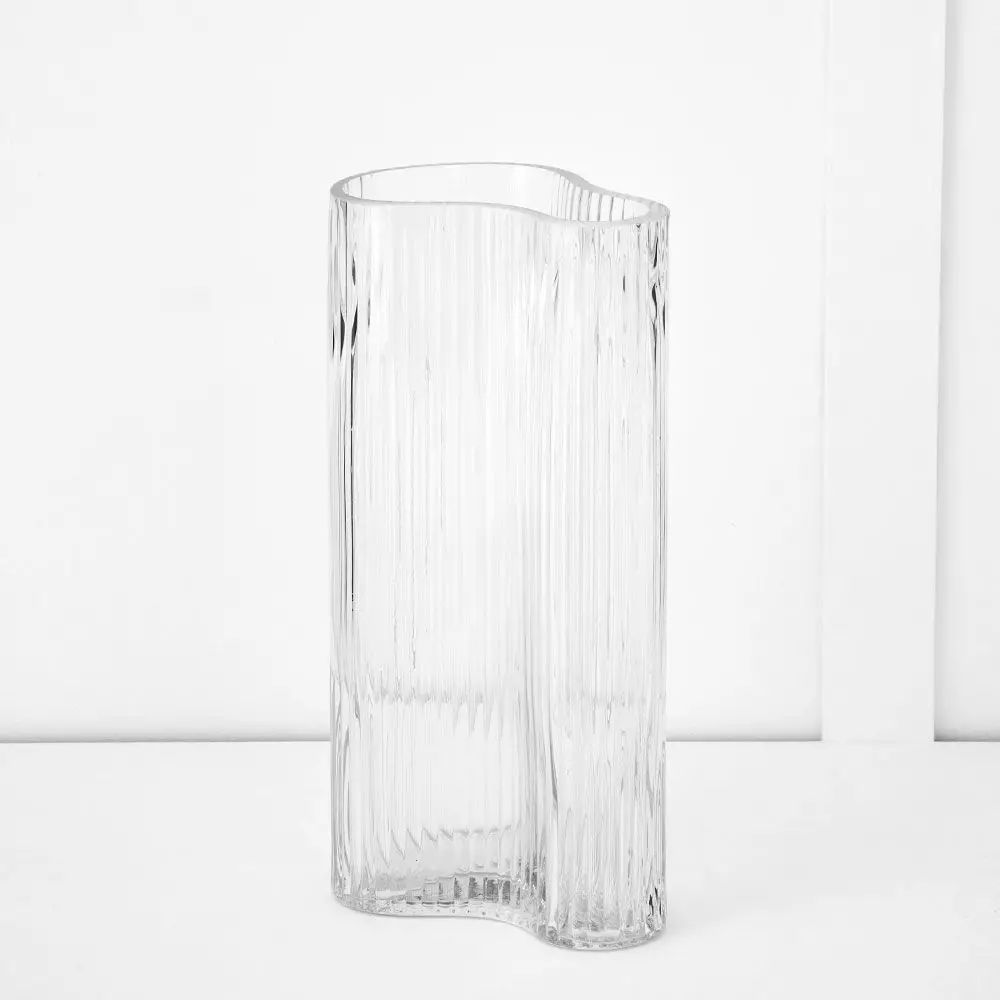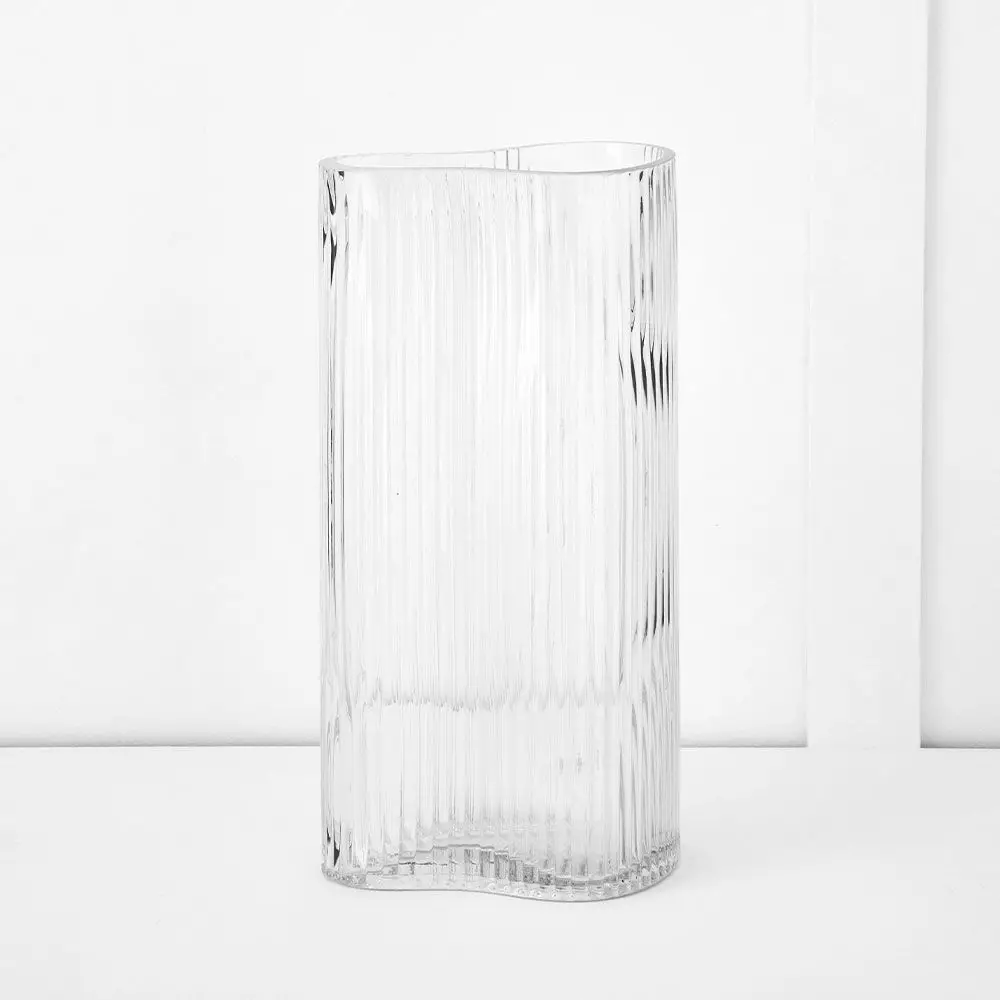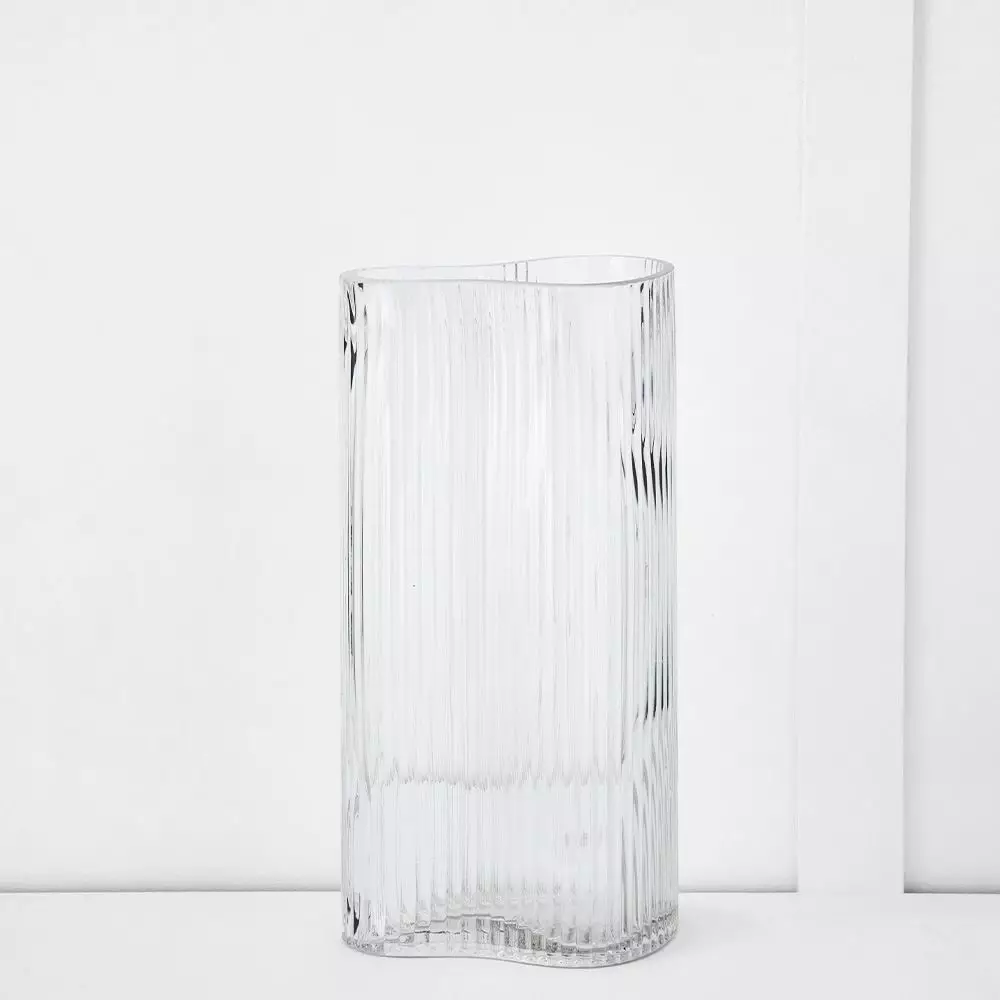 An elegant ribbed vase with an irregular shape will make even the simplest of blooms look wonderful.