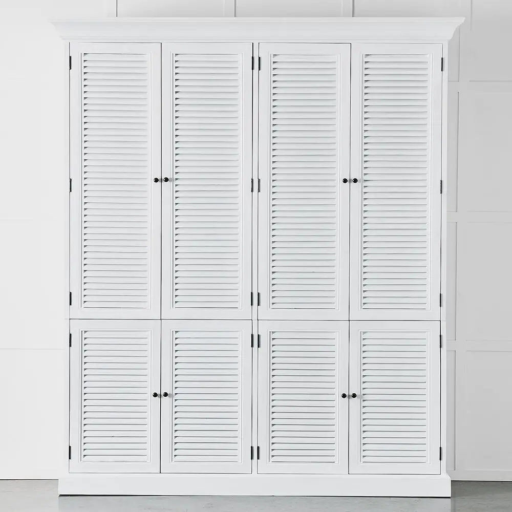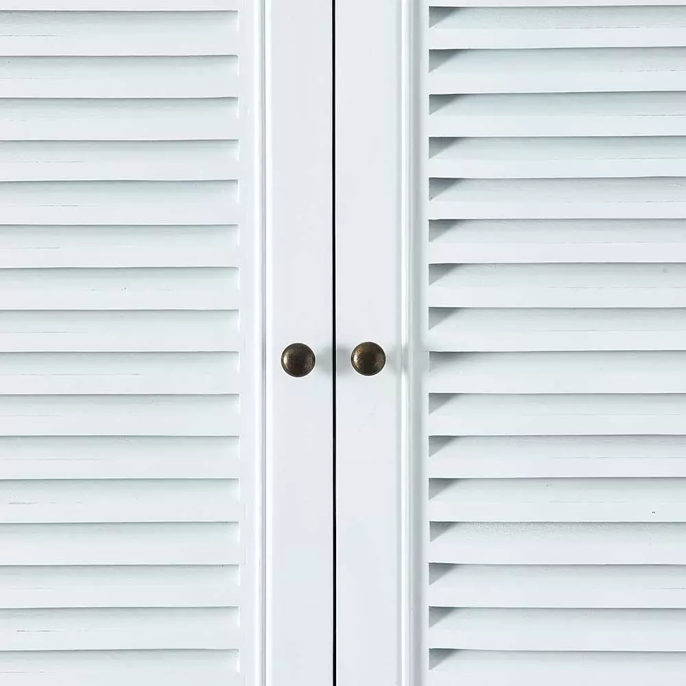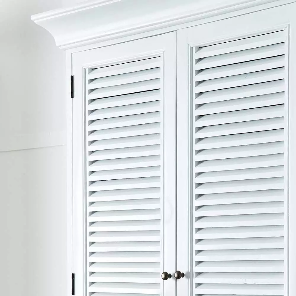 The Copenhagen cabinet is a gorgeous addition to our cabinet range. With 2 removable shelves at the top and one on the bottom there is plenty of storage but beautifully hidden behind the 8 louvered doors. This cabinet is the perfect storage solution for any room, hiding any untidiness while keeping the look sleek. Constructed from poplar and painted a crisp white this louvered cabinet is sure to become a favourite.