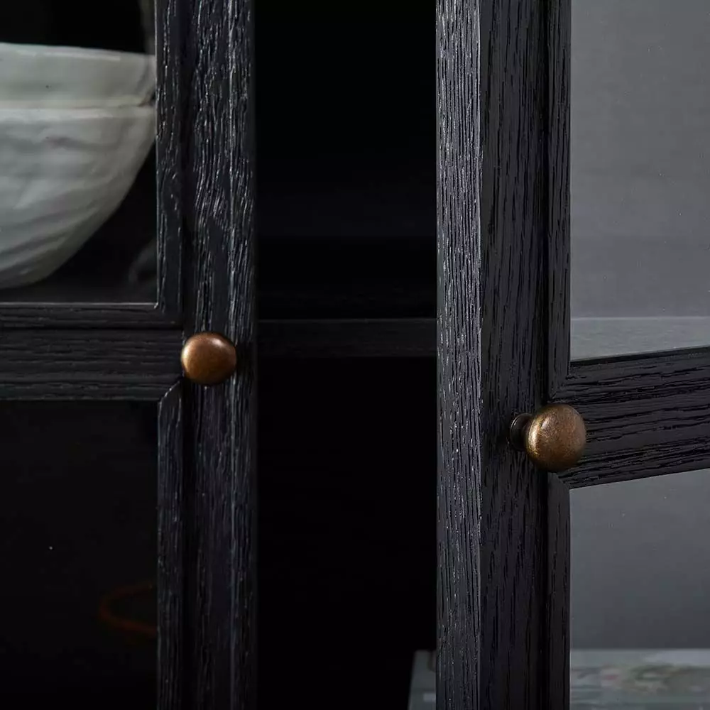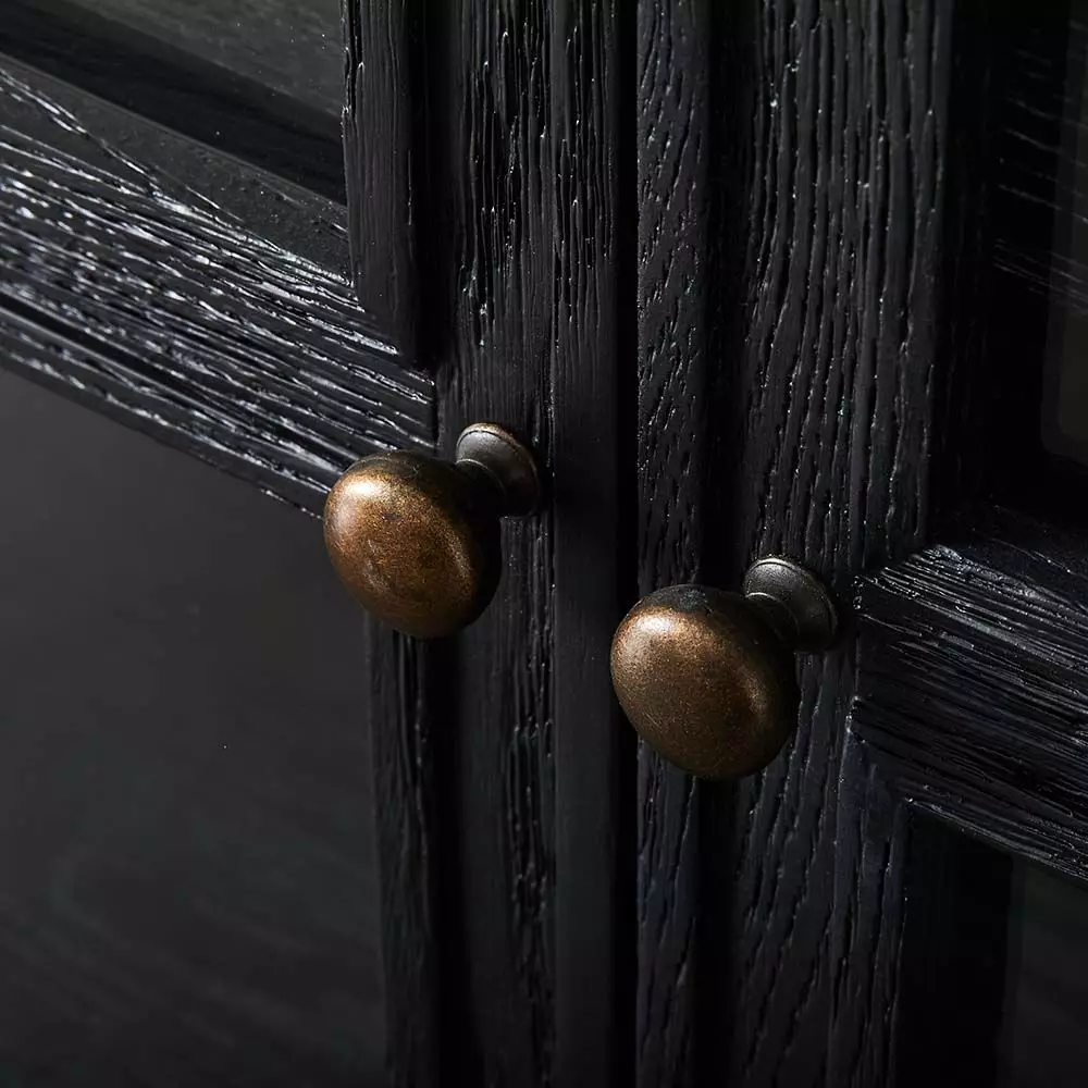 The Fitzroy sideboard is crafted from oak and washed in black so the grain is still apparent and part of the appeal of the piece.