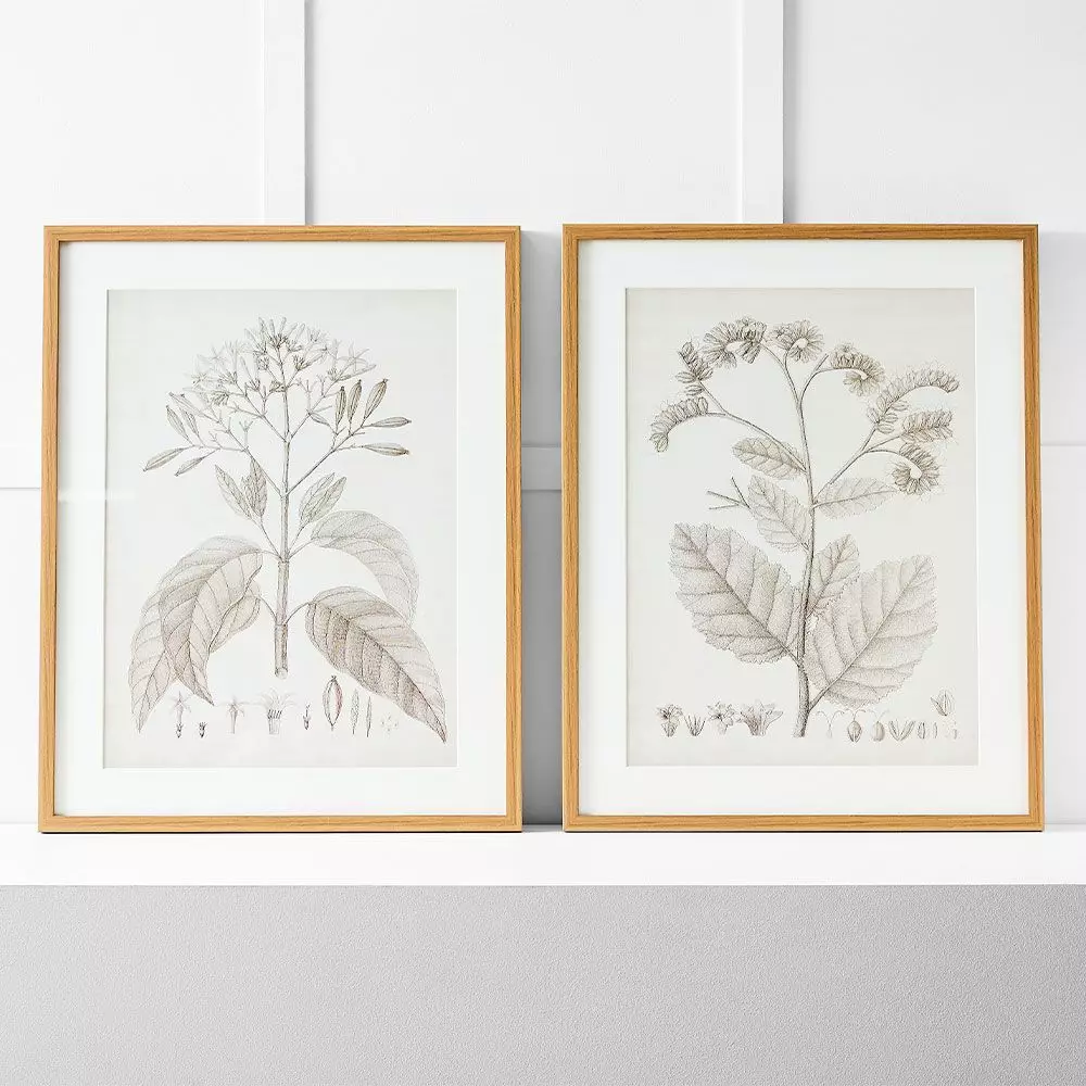 A delicate botanical drawing expertly mounted, protected under glass with a natural-coloured frame will look beautiful by itself – or hang them as a pair. Botanical drawings have been popular for centuries and these will find the perfect place in an room of your home.