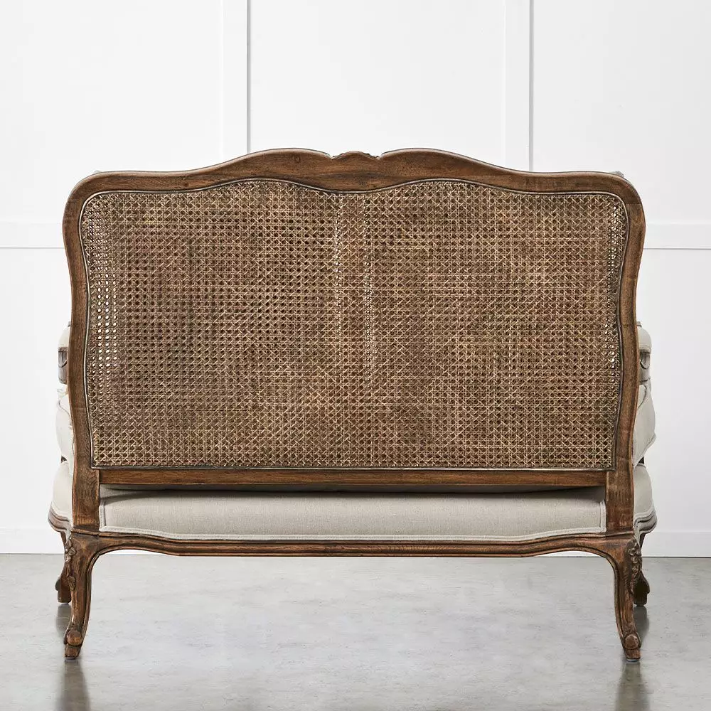 With all the charm of our classic French armchair, a design from the Louis XV era, which we have had for 20 years. This chair is even better – it’s generously sized for two. The original and the 2 seater will make a very elegant pair in a living