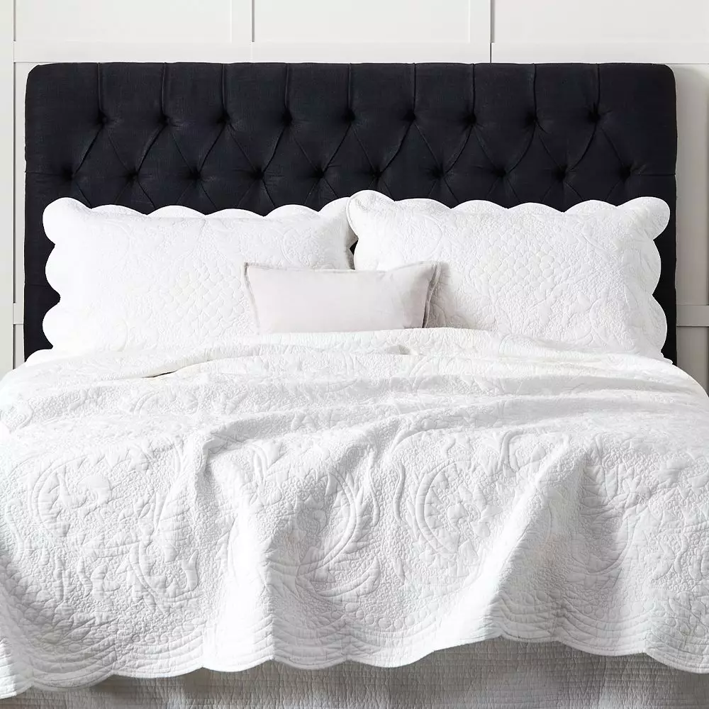 Our Isabelle bedhead will create a focal point in the bedroom. This superbly crafted bedhead is upholstered in 100% linen, padded and with traditional hand tucking and buttoning and finished with oak legs. A classic bedhead which is available in Queen and King sizes and a range of beautiful colours.