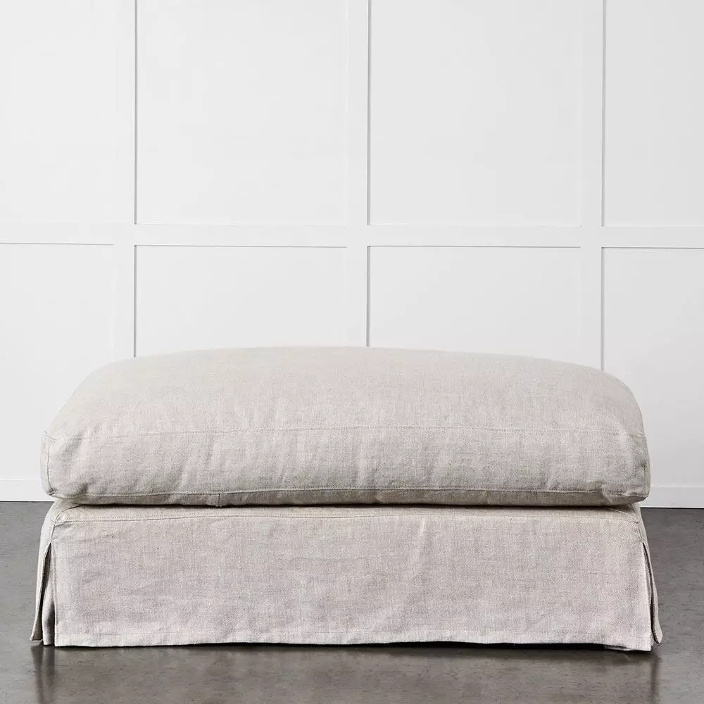 The Kandos ottoman is beautifully upholstered in the same thick 100% linen as our Kandos sofas and armchair. The top cushion is heavily padded and the bottom has the same elegant corner pleating as our sofas and armchair. It’s a match made in heaven. Use it as a footrest, in the place of a coffee table or for extra seating – a versatile piece of furniture.