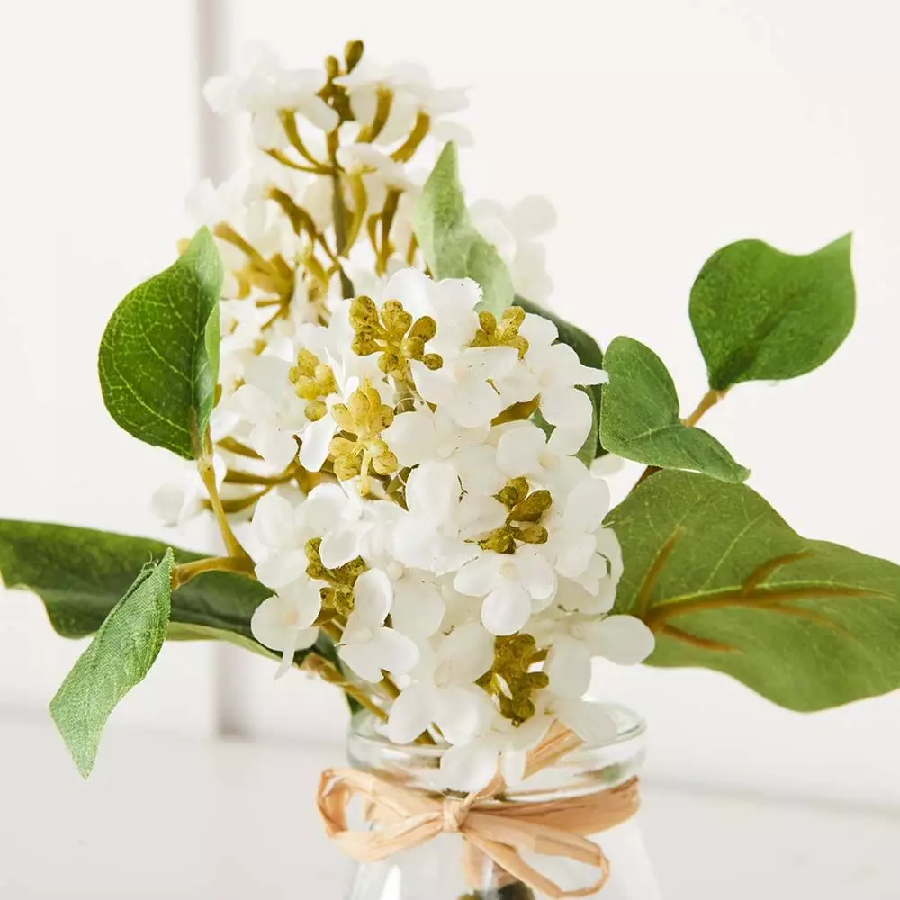 This sweet little glass vase with some Lilac stems is perfect for a bedside table or in the bathroom. The flowers are in gel so they won’t move and the vase is tied with raffia.