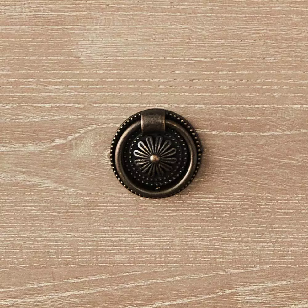 The Montrose has a curved front and slightly rounded edges on the top of the bedside table, lovely detailing on the legs and elegant metal ring pulls on the three long drawers – all combine to create a charming piece of furniture. Crafted from reclaimed elm and fir.