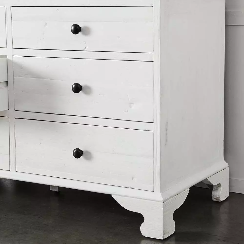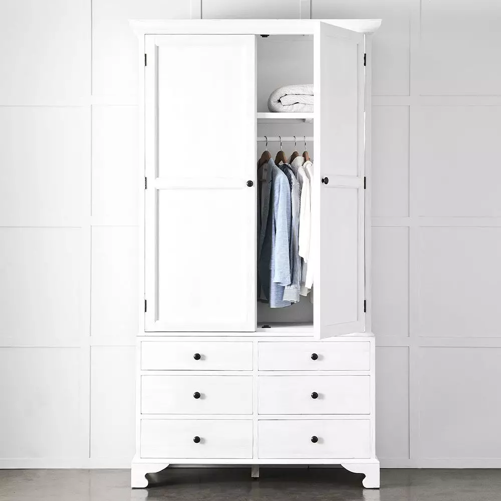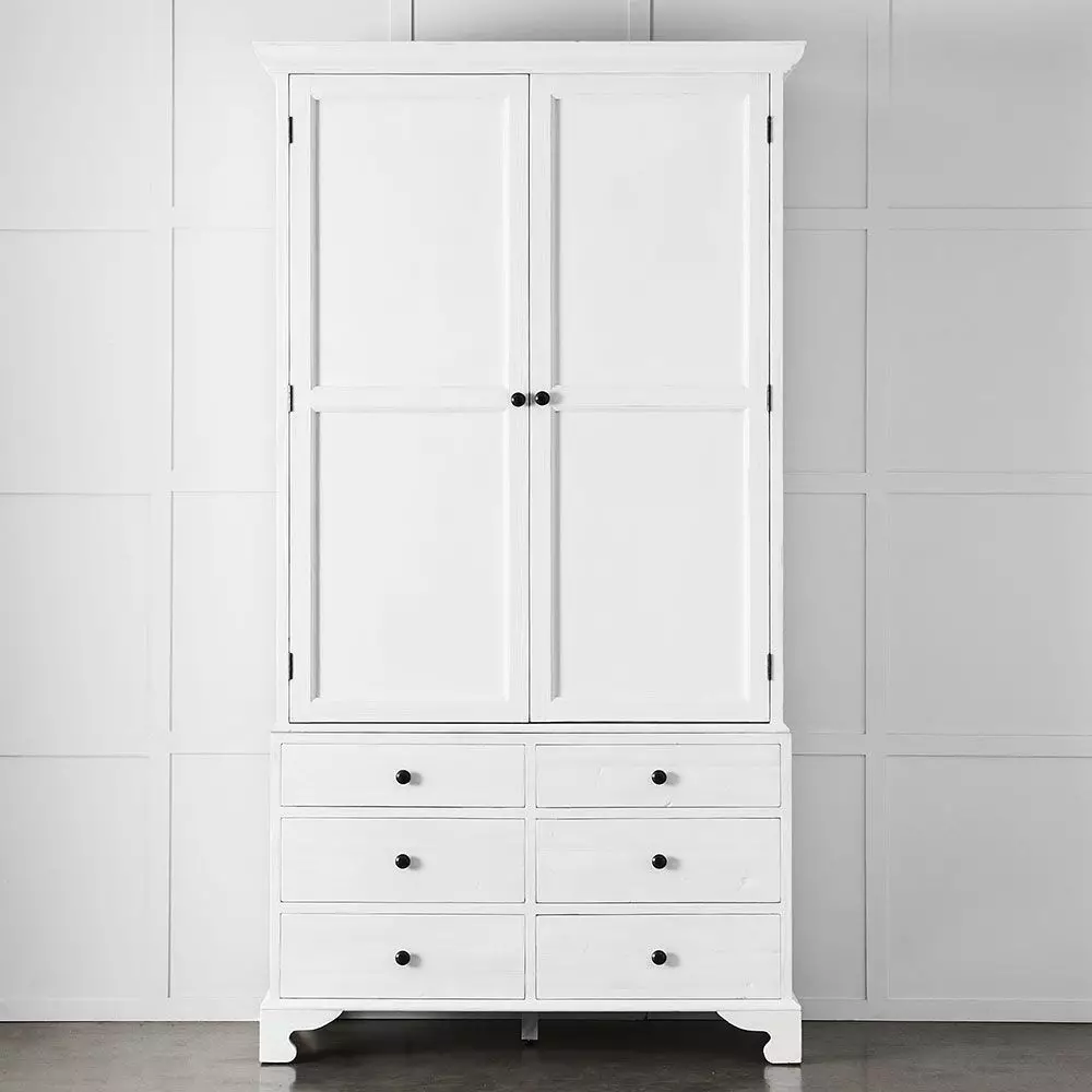 Crafted from recycled pine, the Roma wardrobe offers plenty of storage with one shelf and a hanging rail in the top and 6 roomy drawers in the bottom. The distressed black paint makes no attempt to camouflage any signs of the previous life of the timber. Constructed in 2 pieces for easier transportation.