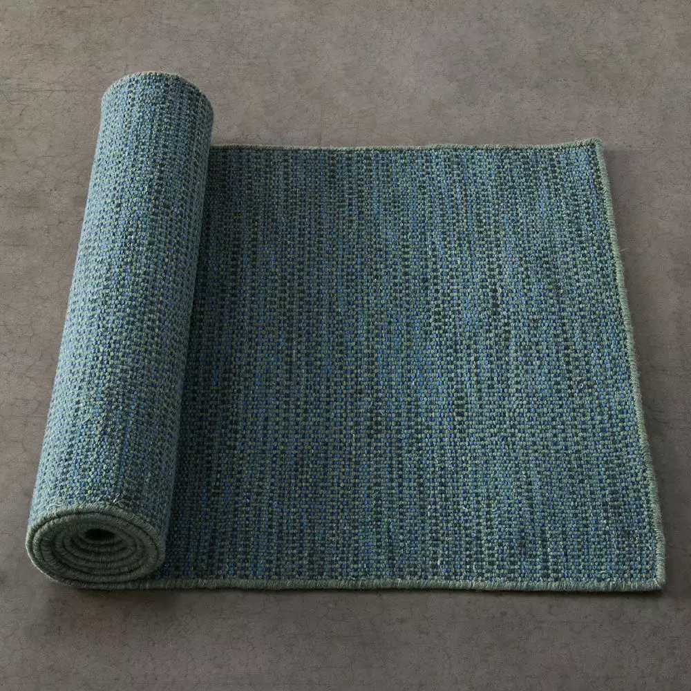 A dramatic, colourful runner in shades of blue and green woven in a geometric pattern. This runner will really say “welcome” in your hallway.