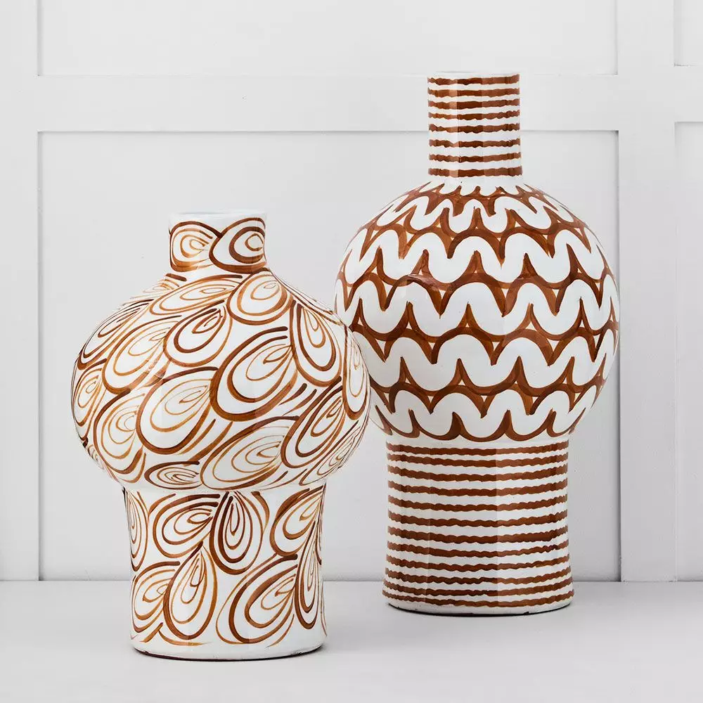 Make a statement with this gorgeous curved and decorated vase. No need to add flowers – it’s beautiful just by itself.
