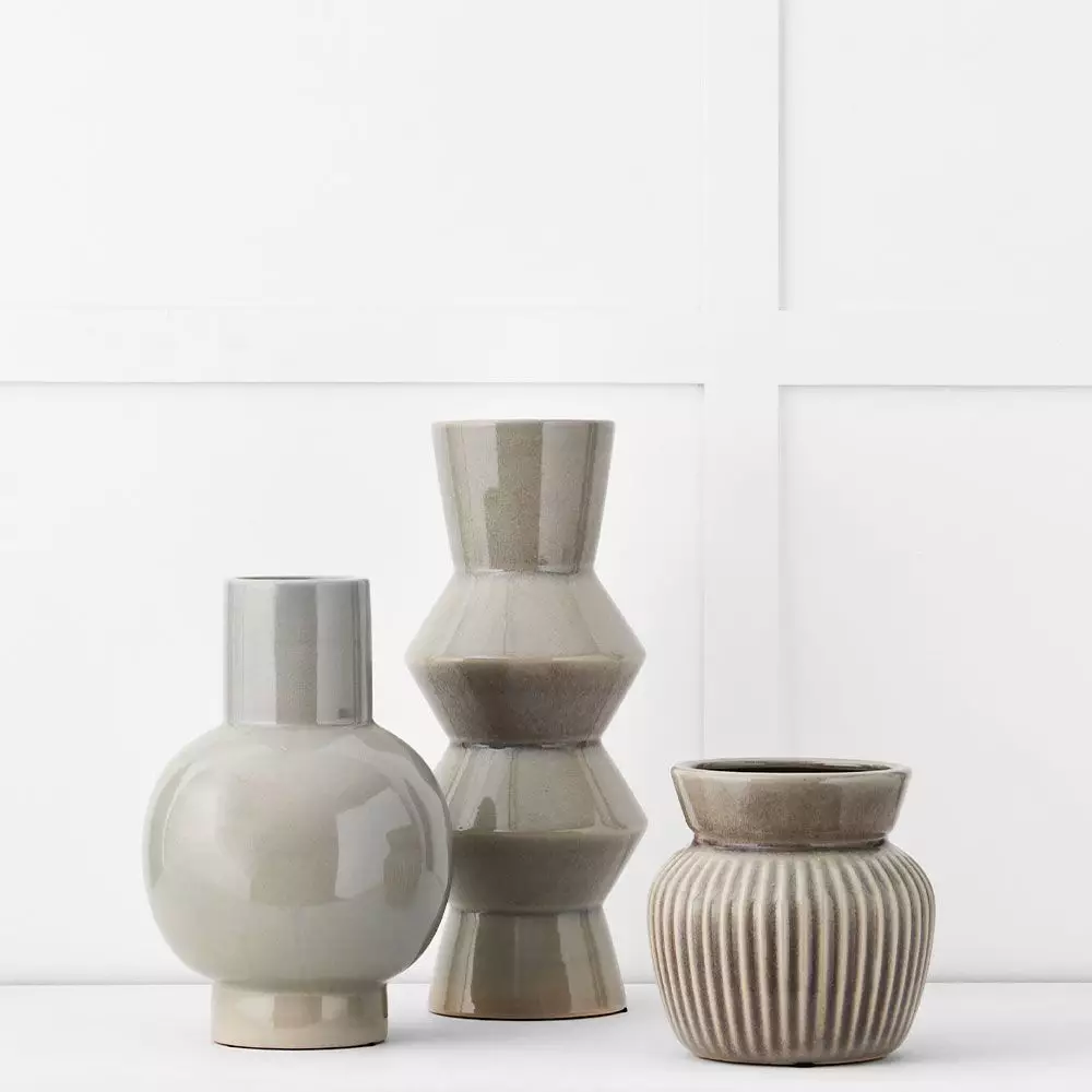 A striking dove grey vase that looks just as good with flowers as it does as a decoration. Make a grouping with the Lucille and Agua vases.